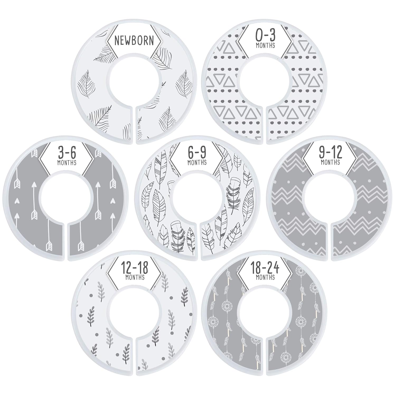 These things are super nifty. Basically, the idea is that you separate out baby’s closet by age/size. Discs are put around the rod which divide the closet into distinct categories. You use the section that baby is currently in, but you can shop ahead for the sizes they will grow into and place them into their respective categories. As baby gets bigger, you can start using the next category of clothes that you’ve already hung up.